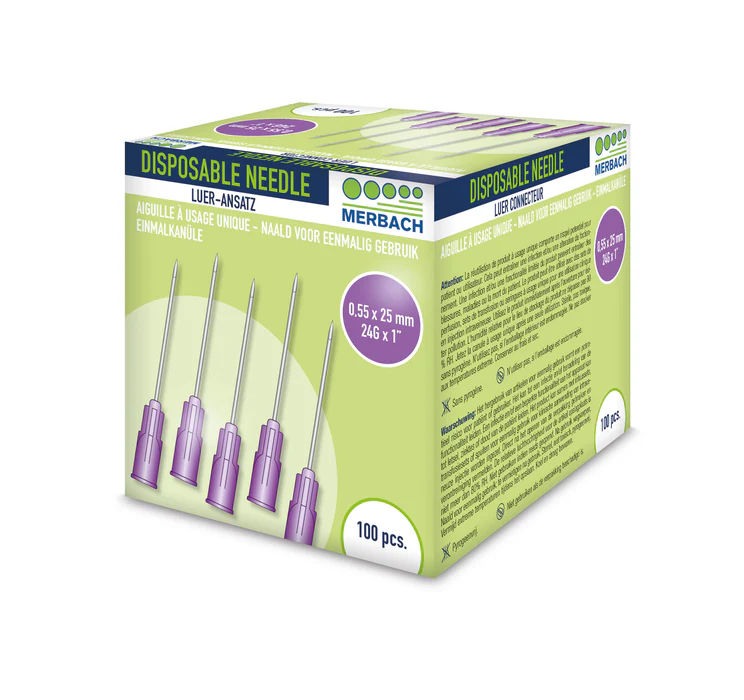 Merbach Injectienaalden 24 G x 1 – 25mm paars 100 stuks