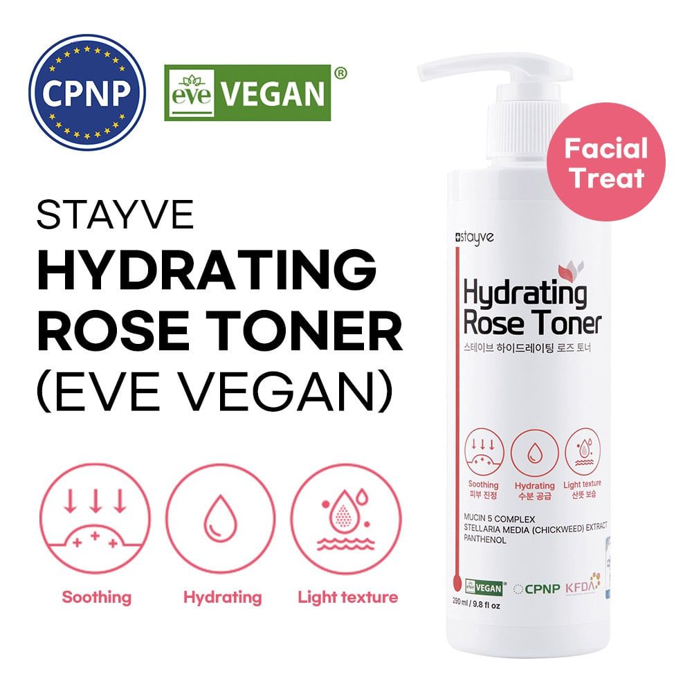 Stayve Hydrating Rose Toner enhances skincare efficacy of BB Glow treatments. This product is great for the skin before and after treatments, intensively moisturizing the skin. With over 10 types of herb extracts, this toner provides soft exfoliation cleansing the pores to help control the skin’s turnover cycle to normal while moisturizing the skin.